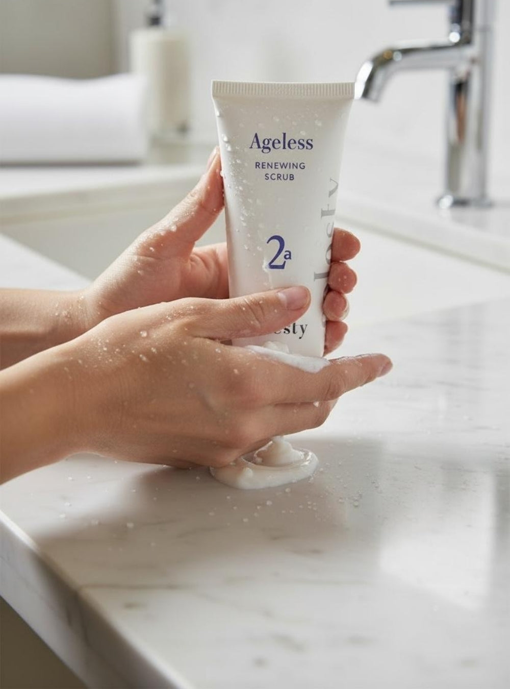 A diferencia de los exfoliantes agresivos que sobreexfolian y causan irritación, Renewing Scrub combina exfoliación + nutrición + apoyo antiedad. Ayuda a: