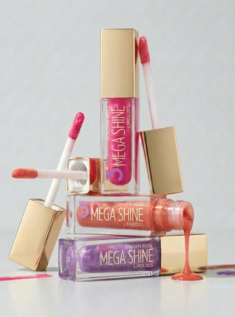 Le gloss 3D Mega Shine, grâce à sa formule légère, glisse sur les lèvres et...