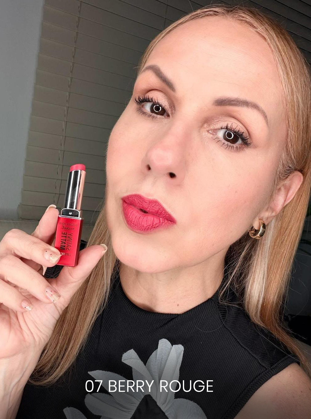 Satiny Matte Lipstick delivers beautifully defined lips with a soft, lightweight feel that’s comfortable all day. Its velvety matte finish glides on effortlessly, giving rich color payoff without dryness. Formulated with Hyaluronic Acid, Jojoba Oil, and Vitamin E, it helps hydrate, nourish, and protect the lips while maintaining a smooth, refined look. Available in 8 versatile shades, perfect for everyday wear or elevating your style for any occasion.