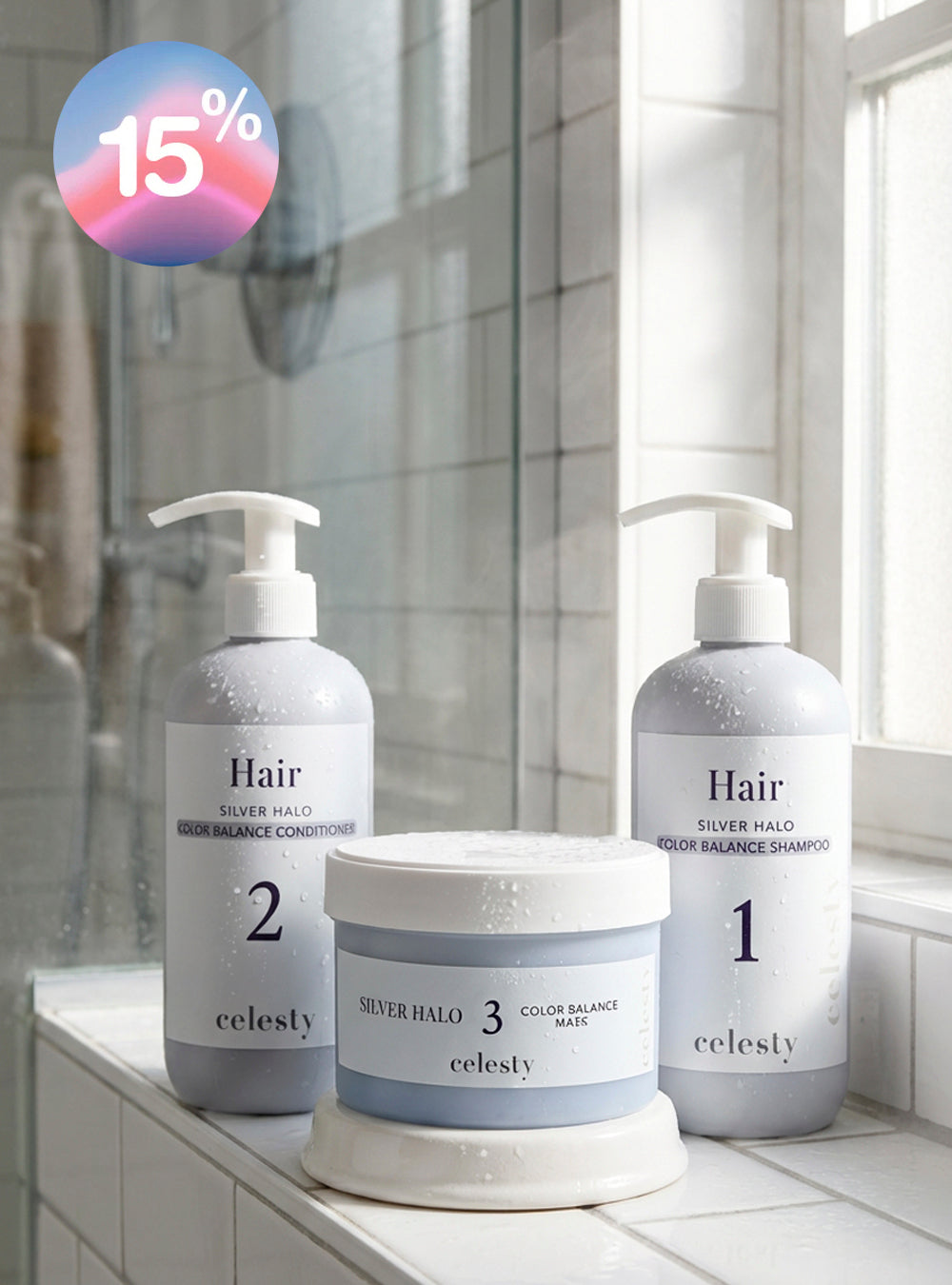 Silver Halo Color Balance Conditioner: Formulated with cationic conditioning agents and lightweight smoothing polymers that target porous, lightened hair — helping restore softness and slip while preserving tone clarity instead of dulling it with heavy coatings.